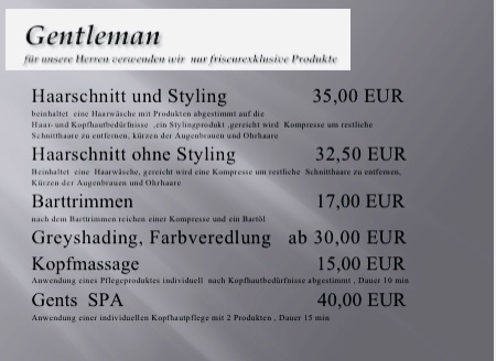 Alle Bedienungspreise enthalten die gesetzl. MwSt. .